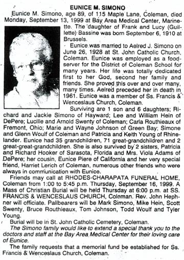 Coleman for A. J. Simono, 55, president of the village of Coleman, who died