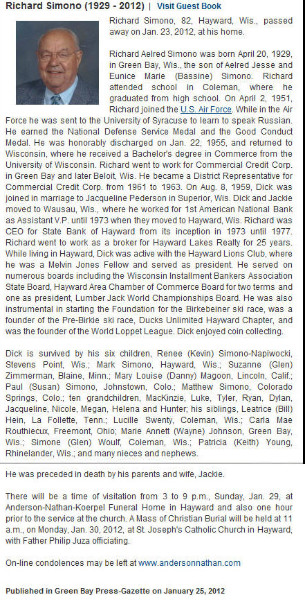 Mr. Simono served as president of the Village of Coleman from April, 1955