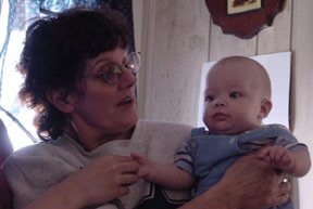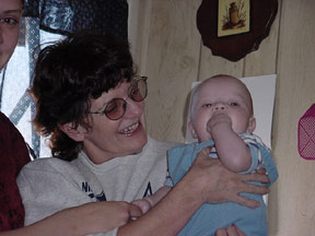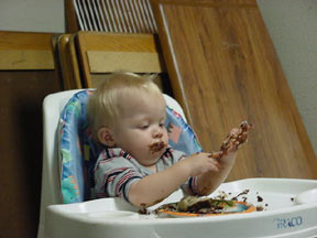 ANDREW's FIRST Birthday Party..Andrew eating his cake...Gram and Andrew, Mattie