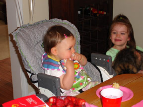 Autumn as Wags, the dog; Ashlynn as Dorothy, the dinosaur; and "The