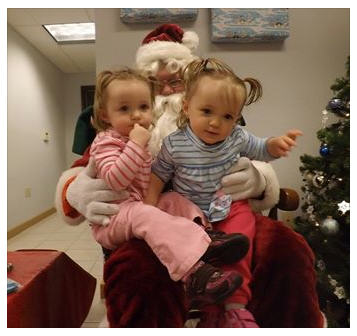 Not sure which is which, But here are the beautiful twins at 18 mos. visiting Santa.