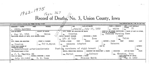 Elm Street. (Cause of Death from Death Certificate: Arteriosclerosis/Breast