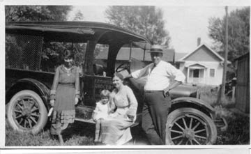 Lyda, Dorothea, Celia, Pete in front of Frank P. Martens Grocery truck and