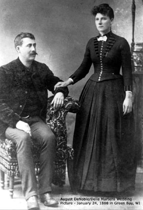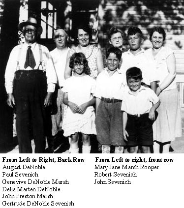 Everett Daily Herald May 7, 1937 OBIT August DeNoble, 75 of 2422 Hoyt Avenue, died at his home Thursday afternoon after a long illness. Mr. DeNoble was born in Green Bay, WI, October 10, 1861. He had been making his home in Everett for five years. In addition to his widow, Mrs. Delia DeNoble, he is survived by two daughters, Mrs. Paul J. Sevenich of 424 Laurel Drive, and Mrs. V.P. Marsh of Virginia, MN: one son, Herbert DeNoble of Calumet, MN and six grandchildren. Funeral services will be held Saturday morning at the Immaculate Conception church at 9 o'clock. The Rev. William Fitzgerald will officiate and interment will be in Evergreen Cemetery. The rosary will be said at Jerrard's Chapel this evening at 7:30 o'clock. |