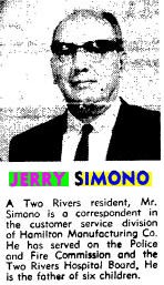 Gerard (Gelard) M. Simono, 59, of 814 25th Street, Two Rivers, employed at