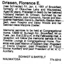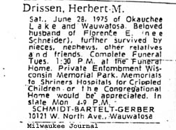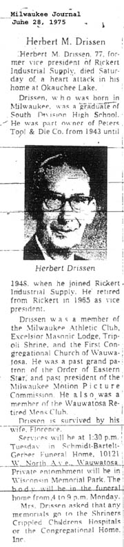 Executive Secretary of the motion picture commission of Milwaukee in 1950. Article Milwaukee Journal 5/14/50)includes picture of H. M. Drissen and his profession was that of a manufacturer's agent.