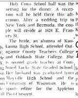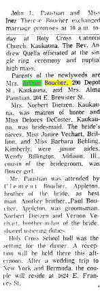 He married Inez Boucher at Holy Cross Catholic Church in Kaukauna, WI, on