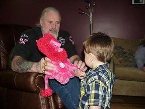 certificates for "Build-A-Bear" and Mom built Jake a new frog and