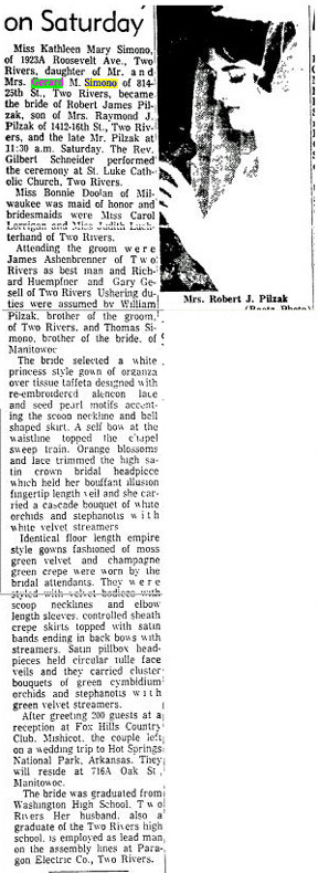 Marriage : Robert James Pitzak on October 24, 1964
