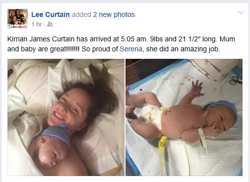 Born at Advocate Good Shepard Hospital at 5:05 a.m. weighing 9 lbs. and 21 1/2 " Long