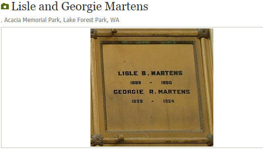 1 Georgie Ruth MCBRATNEY b: 11-23-1899 in Olympia, Washington