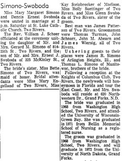 Marriage : Dennis Ernest Swoboda on August 07, 1971