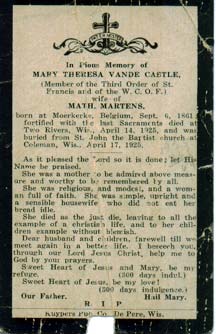 died in De Pere. Mary Vande Casteele was born in Moerkerke Belgium on Spetember