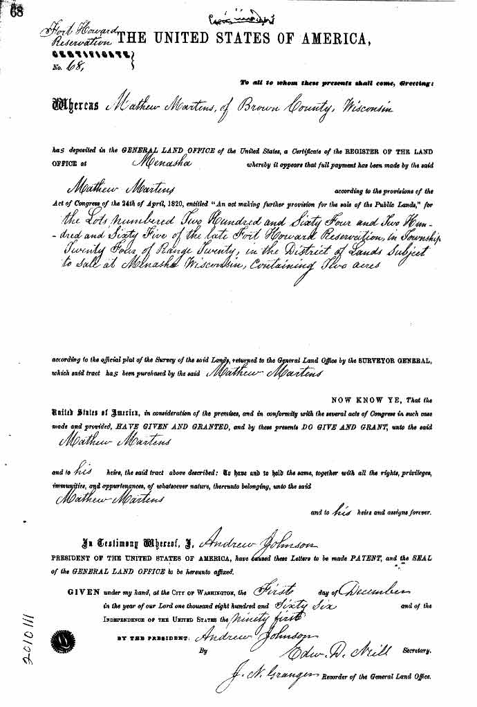 Green Bay WI which lists only Mathias (Mathew) Martens as a boarder, occupation: