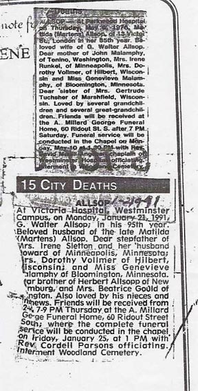 Those from away who attended the funeral were Hilbert and Dorothy Malamphy
