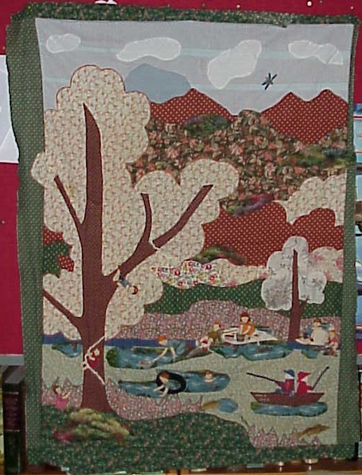 | This is the beginning of AUNT DELLA's FARM where we would go during the summer swimming, etc. The other half of the quilt will be the farm and the happening we enjoyed visiting the farm, being "townies" to our country cousins. | |||||||||||||||||||||||||||||||||||