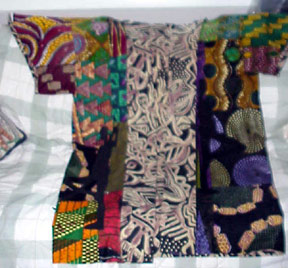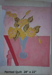 ![]() BIRD IN FLIGHT: First quilt I made. Fabrics are all Linen and Linen type, machine pieced using 4" squares of fabric throughout, hand quilted. Sometimes I hang the quilt up with just the quilting design showing. |