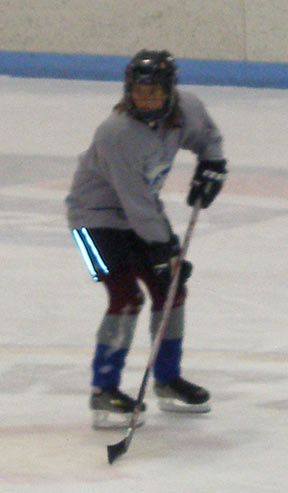 thru HOCKEY. She plays center for a beginning Women's Hockey League. This