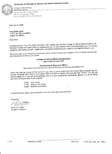 for making the DEAN'S List at the U of C in Denver and being submitted to the