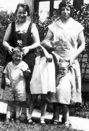 Left: Alma, Bessie front row: Monica, Mary, Matt