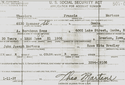 Census: Theo F. Martens, 23, in Omaha NE married, wife: Josephine 19, daughter