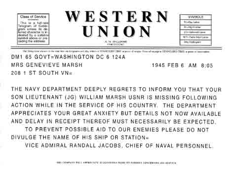 Letter to Genevieve Marsh from U.S. Navy Chaplain My Dear Mrs. Marsh, It has been my honored privilege to be the Chaplain of William Marsh, 298939,