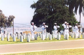 a bus to Memorial Service at Fort Rosecrans National Cemetery, San Diego,
