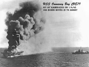 I attach. Then the big surprise came on Friday afternoon. There was a guy on the Ommaney Bay, Ray Gensler who started to gather all the information from survivors, personal stories, ship logs, news articles and recollections back in 1984. In the early 1990's he stated to write the book on a typewriter, then someone told him about PC's and Macintosh. Well to make a long story short, in the 2004 reunion, we got our first chance to see the book. It was overwhelming. It is 550 pages of everything from the first day the keel was laid to the reunions up to 2003. His first printing was 235 and he sold 237 books. I purchased one and ordered two more books. This was without a doubt, one of the best reunions that I have ever attended. Gus Marsh